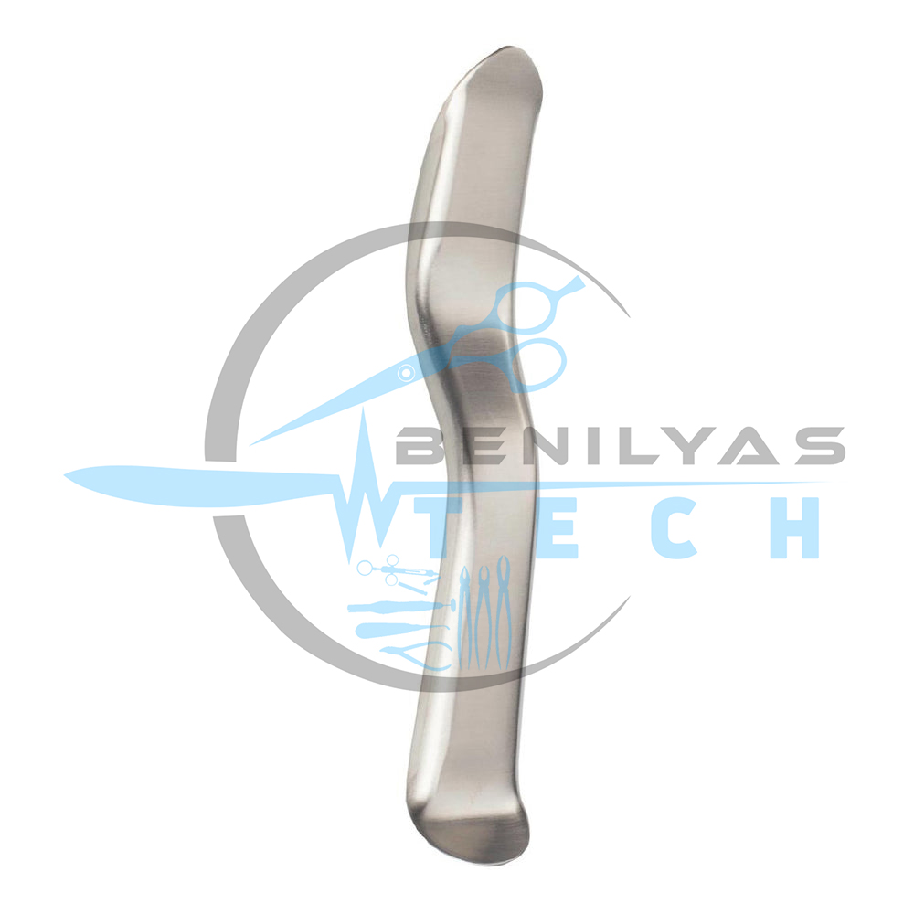 For this purpose, the instrument features a double-ended design that suits different applications. The bayonet-shaped end’s straight outline is ideal to press down the tongue and keep it from projecting into the surgical field. The angled end, otherwise, permits surgeons to hold away the cheeks and lips to increase exposure.
